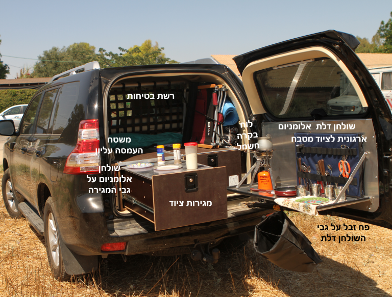 טיוטה לנד קרוזר נוספת הגיחה לאוויר העולם עם זיווד חדש התקנו בה מערכת מגירות: -עם מגירת ציוד מודלרית -מגירות מטבח עם כיור וגז מקום לכל הציוד דלפק עבודה . מערכת חשמל: -מצבר צרכנים -ממיר 220 ובקר ניהול מצברים מערכת מים עם מיכל סמוי ומערכת אוויר למילוי גלגלים .. והכל ברכב אחד
