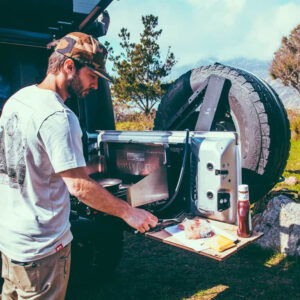 שולחן דלת / מדף דלת ע"ג דלת תא מטען של הרכב. ללא קידוחים במרכב. התקנה באמצעות אום עיוור בדלת וחיבור ברגים. לפרוק קל ונוח לתפעול המכלולים בדלת.