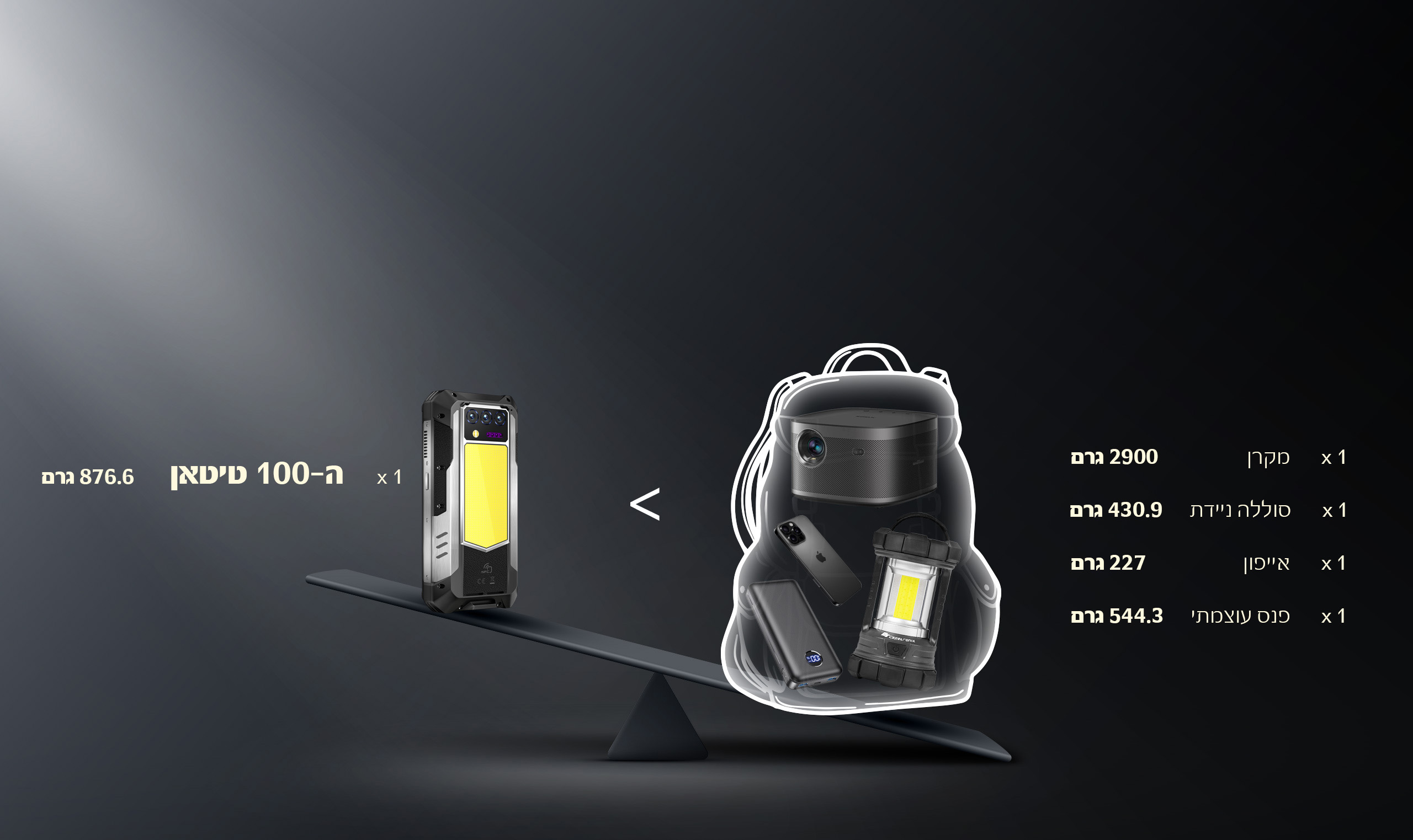 ה-WP100 Titan מפשט לנו את החיים בשטח ומחליף את כל מה שהיינו סוחבים: מקרן, מטען נייד, פנס שטח וסמארטפון – הכל במכשיר אחד, שנמצא תמיד בהישג יד.