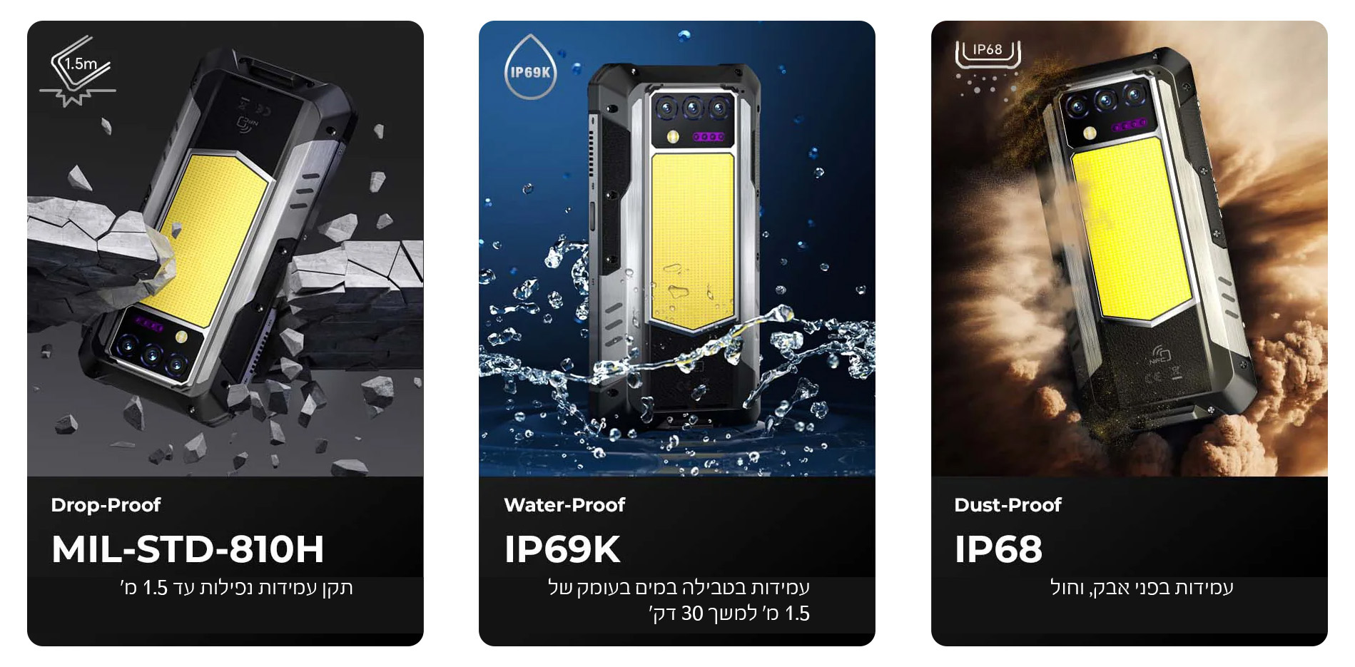 והכי חשוב – המכשיר עובד בטמפרטורות קיצון של מינוס 45° ועד 75° צלזיוס, כך שנוכל להמשיך לעבוד, לתעד ולהישאר מחוברים גם במזג האוויר הקשה ביותר.