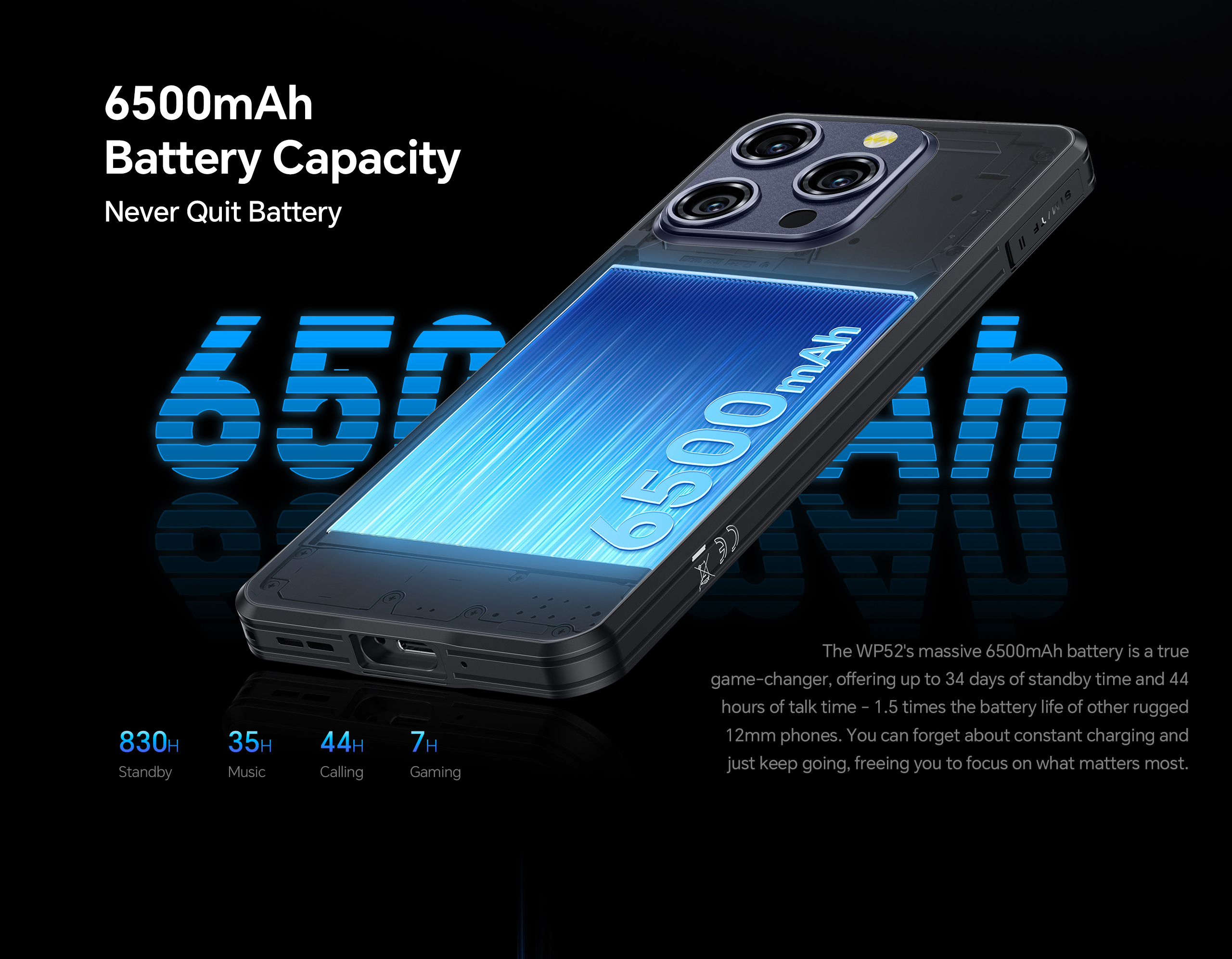 ה-WP52 דק במיוחד בעובי של 12 מ"מ בלבד, אך עדיין כולל את הסוללה הגדולה ביותר הקיימת בטלפון שטח בעובי כזה. השילוב המושלם בין ניידות לעוצמה מאפשר לנו להכניס אותו בקלות לכיס ולצאת לדרך, תוך שמירה על ביצועים גבוהים וללא פשרות – לכל הרפתקה ובכל מקום.סוללה עוצמתית של 6500mAh