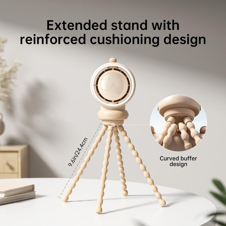המאוורר מצויד בחצובה גמישה במיוחד, המאפשרת לחבר אותו בקלות למגוון משטחים וצורות – עגלות תינוק, אופניים, שולחנות ועוד. החצובה הרב-שימושית הופכת את המוצר לאידיאלי לשימוש יומיומי במגוון סביבות ותנאים.