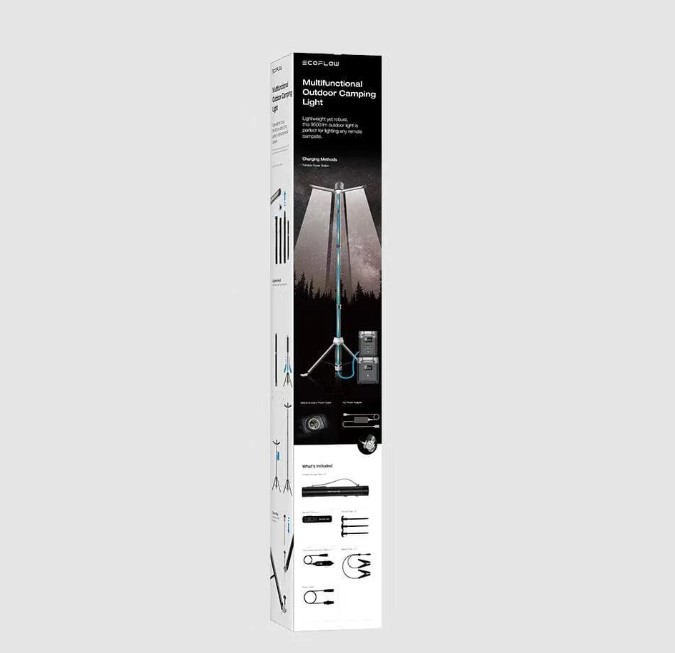 מנורת קמפינג עוצמתית עם גובה מתכוונן מ-80 ס"מ עד 2.5 מטר, עוצמת תאורה של עד 9500 לומנס ותאורה למרחק של עד 200 מטרים. כוללת שלט רחוק לשליטה נוחה ושלושה מצבי תאורה – אור לבן קר 25%, 50%, 100%